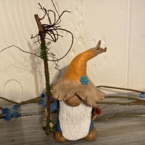 This super cool scarecrow gnome is great for really any occasion. Handmade/painted Add it to your shelf, table or even your fairy garden. We have created these gnomes with polymer clay and they are hand carved and painted. No mold used. Measures approximately 6″ tall x 3″ wide, some may be smaller or slightly larger….